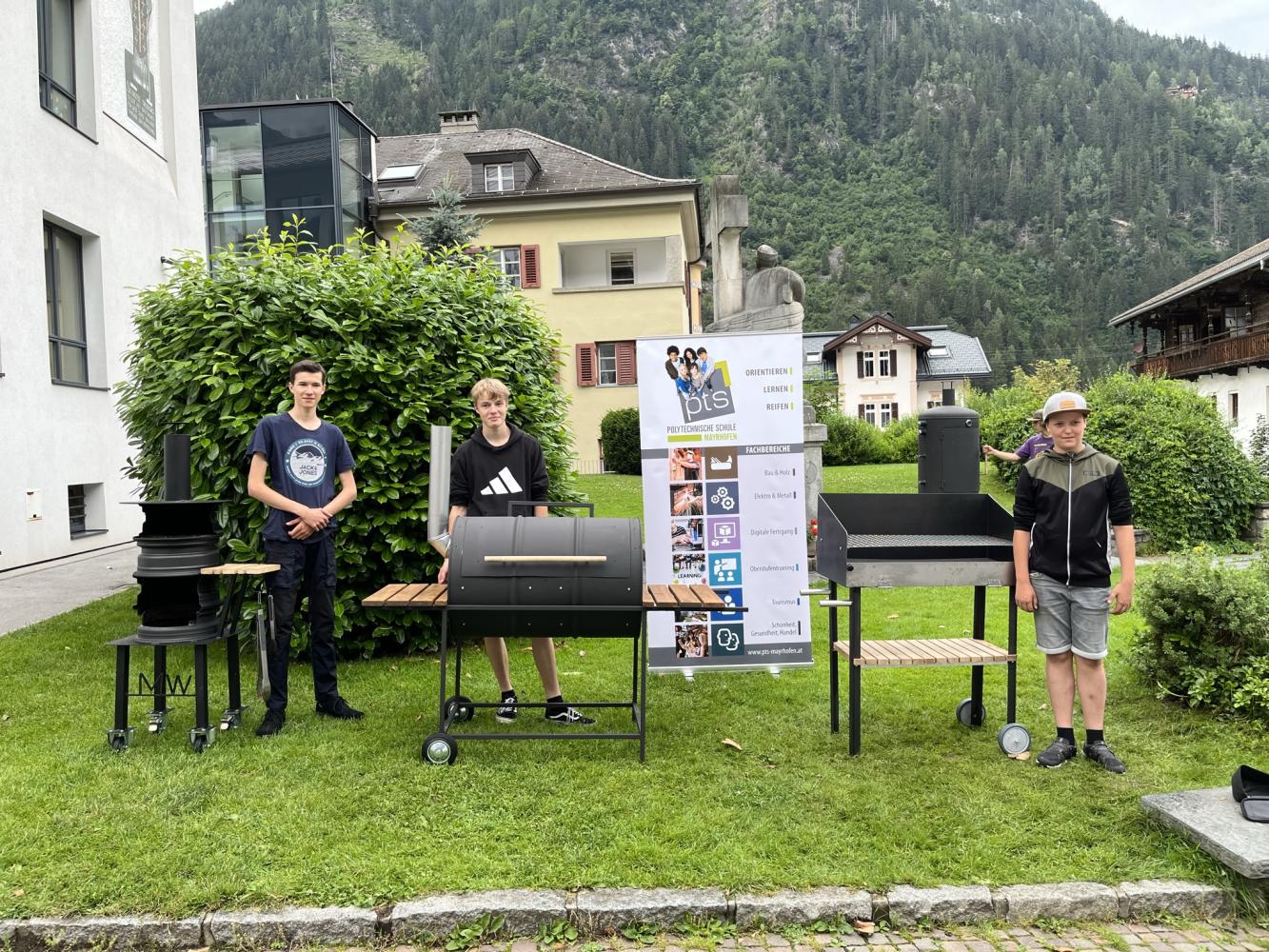 Im Rahmen des fachpraktischen Unterrichts des Fachbereiches Metall, fertigten unsere zukünftigen „Metalltechniker“ Griller an. Die Schüler konnten dabei das Design selbst wählen und mussten ihre Idee mittels einer technischen Zeichnung in AutoCAD aufs Papier bringen. Nach dem die Materialauswahl getroffen war, bauten die Schüler:innen selbstständig im Rahmen des Werkstätten-Unterrichts ihre Griller. Alle Schüler:innen konnten dabei eindrucksvoll ihre erlernten Fähigkeiten und Kenntnisse unter Beweis stellen. Im Rahmen einer „Grillparty“ konnten die Griller der Öffentlichkeit, unter anderem dem Bürgermeister von Mayrhofen, Hansjörg Moigg und den zukünftigen Lehrherren der Schüler:innen vorgestellt werden.