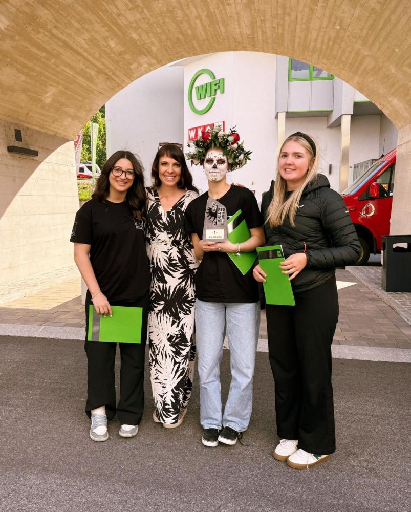 Für unsere Siegerinnen und ihrer Lehrerin, Fr. Daniela Haupt, aus dem Fachbereich Gesundheit/Schönheit/Soziales gilt es nun, sich auf den Bundeswettbewerb vorzubereiten. Im Juni messen sie sich dann mit den besten Schüler:innen aus Österreich.