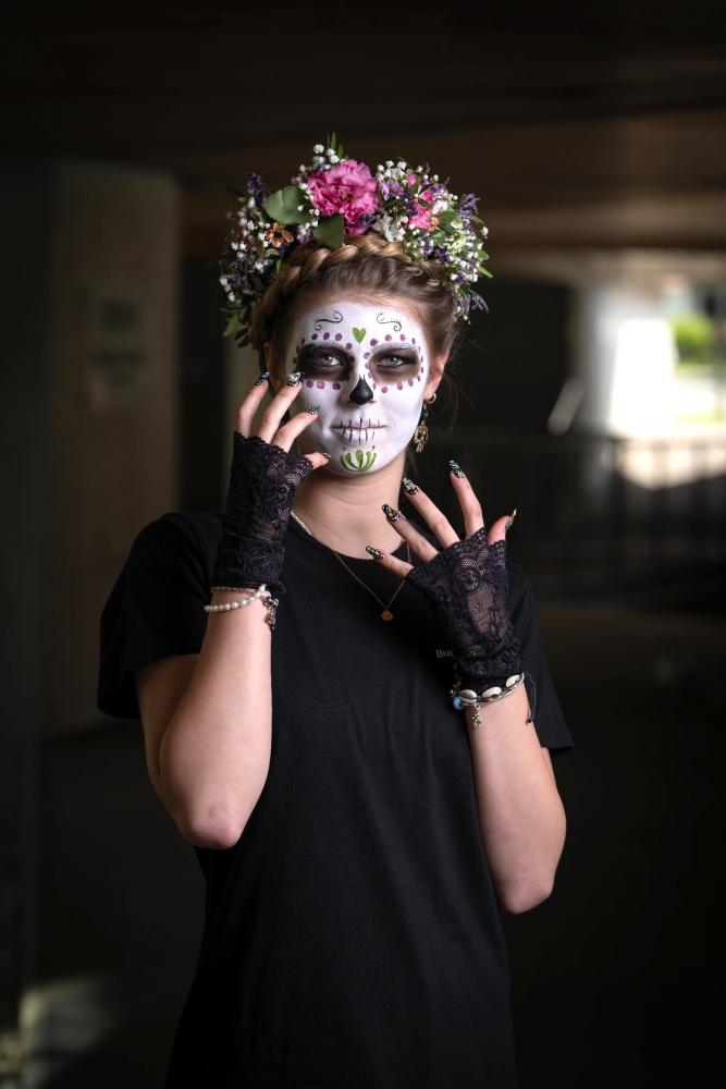 Die Aufgabenstellung hatte es in sich: Innerhalb von nur vier Stunden mussten die Teilnehmerinnen ein Modell zum Thema „Día de los Muertos“ (Tag der Toten) schminken, kreative Nagelkunst gestalten, eine kunstvolle Flechtfrisur anfertigen und einen Blumenkranz als Haarschmuck binden. Zusätzlich waren zwei Fachzeichnungen zur Frisur und Visagistik gefragt – Präzision, Kreativität und handwerkliches Geschick waren gefordert.